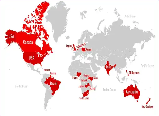 | Área geográfica | Todos continentes; 20 países |
