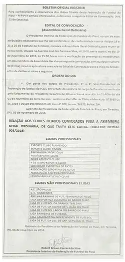 - ↑ «CND intervem no futebol do Piauí». Diário de Notícias, ano XXX, edição 11516, Segunda Seção, página 7/republicado pela Biblioteca nacional-Hemeroteca Digital Brasileira. 1 de junho de 1960. Consultado em 14 de novembro de 2021