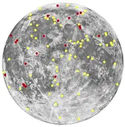 - Durante a missão Apollo 17 em dezembro de 1972, o piloto do módulo lunar Harrison Schmitt observou um fenômeno brilhante semelhante a um flash ao norte da cratera Grimaldi [en] enquanto estava em órbita ao redor da Lua.[59]