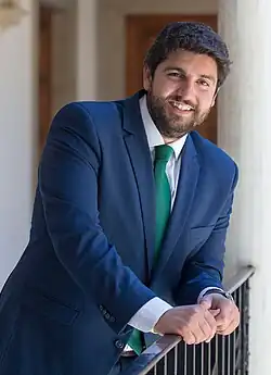 - ↑ «Fernando López Miras elegido como presidente del PP de Murcia con el 93,24 de los votos» (em espanhol). Europa Press. 18 de março de 2018. Consultado em 14 de setembro de 2021