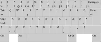 | a | á | b | d | ð | e | f | g | h | i | í | j | k | l | m | n | o | ó | p | r | s | t | u | ú | v | y | ý | æ | ø |