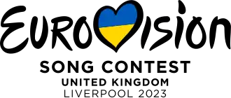 A 7 de outubro, ao mesmo tempo que o anúncio da cidade anfitriã, a UER revelou o logo padrão para o Festival de 2023.[84][46] O coração da Eurovisão, contém, por tradição, a bandeira do país vencedor da edição anterior, neste caso a bandeira da Ucrânia. Debaixo de "Song Contest" (Festival da Canção) está excecionalmente designado "United Kingdom" (Reino Unido) seguindo-se da cidade anfitriã, "Liverpool 2023".[45]