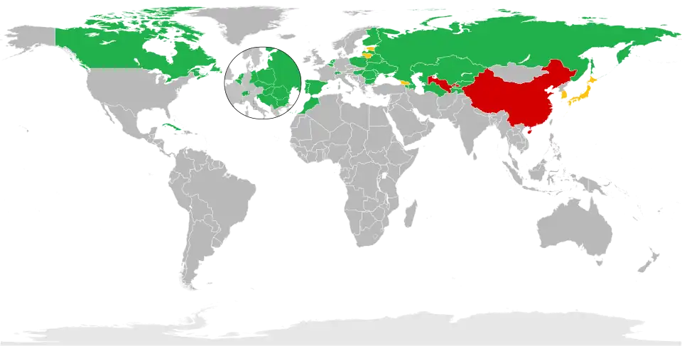 - Ex-participantes – Países que participaram no passado, mas retiraram-se.