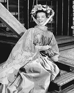 Katharine Hepburn (1907–2003) foi uma atriz estadunidense. A carreira de Hepburn em Hollywood durou mais de 60 anos. Ela era conhecida por sua independência obstinada, personalidade espirituosa e franqueza, cultivando uma personalidade de tela que combinava com essa imagem pública, o que a fez interpretar regularmente mulheres sofisticadas e com muita força de vontade. Seu trabalho foi em uma variedade de gêneros, indo da comédia ao drama literário, o que lhe rendeu vários feitos, incluindo quatro prêmios Oscar (todos de melhor atriz – mais do que qualquer outro artista),[1] um Emmy e indicações para um Grammy e dois Prêmios Tony; o que a torna uma das poucas artistas a receber indicações para todos os quatro principais prêmios de entretenimento. Em 1999, Hepburn foi eleita pelo Instituto Americano de Cinema como a maior estrela feminina do cinema clássico de todos os tempos.[2]