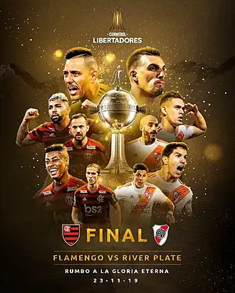 - ↑ «Flamengo lift Copa Libertadores with last-gasp 2-1 win over River Plate» (em inglês). France 24. 23 de novembro de 2019. Consultado em 2 de dezembro de 2019