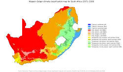 A África do Sul está entre os países mais vulneráveis às mudanças climáticas na África, enfrentando riscos elevados de escassez hídrica, eventos extremos e impactos socioeconômicos, com índice ND-GAIN de vulnerabilidade, feito pela Universidade de Notre Dame, que a posiciona em 92º lugar entre 181 países em 2020.[11] O Painel Intergovernamental sobre Mudanças Climáticas (IPCC) alerta que o continente africano, incluindo a África do Sul, experimentará aumentos de temperatura sem precedentes e requer significativa ampliação de financiamento para fortalecer sua capacidade adaptativa.[12]