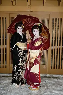 - ↑ a b Swan, Scott (22 de janeiro de 2021). «Get up close to the geishas of Japan and discover the history of this mysterious practice». WTHR. Consultado em 21 de abril de 2022