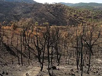 Em todo o país, ao longo dos tempos, a floresta foi degenerando em matagal (maquis) ou charneca (garrigue), ou então sendo substituída pelo pinheiro-bravo (Pinus pinaster) (30% da floresta) ou pelo eucalipto branco (Eucalyptus globulus) (20% da floresta), que foram propagados em larga escala nos inícios do século XX.[carece de fontes]