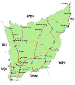 A maior cidade do departamento é também sua capital, a Flórida, onde se encontram locais de interesse como Piedra Alta, local de grande importância histórica nacional e regional. Na cidade também existem lugares como a Praça da Assembléia, a Basílica do Caredral, que é um santuário à Virgem dos Trinta e Três; a capela de San Cono, padroeira do departamento, é amplamente frequentada todo dia 3 de junho para celebrar o dia de San Cono, por peregrinos vindos de vários setores do país e arredores; Parque Robaina e Prado Piedra Alta, entre outros.