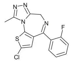 Nome IUPAC 2-chloro-4-(2-fluorophenyl)-9-methyl-4H-thieno[3,2-f] [1,2,4]triazolo[4,3-a] [1,4]diazepine