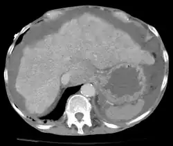 O aumento da quantidade de fluido peritoneal na cavidade peritoneal é conhecido como ascite (do grego askos, "saco"). A origem do líquido acumulado pode variar[1]: