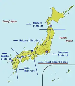 Ao todo cinco unidades distritais agem em conjunto como uma frota a guardar as águas de suas jurisdições e fornecer apoio em terra. Cada distrito tem uma base da Força Marítima de Autodefesa de apoio a militares e civis. Além disso, cada distrito abriga um a dois esquadrões de escolta regionais, compostas por dois a três Destroyers (DD) ou escoltas (DE). As escoltas (DE) tendem a ser de classes mais velhas, geralmente são ex-navios da força principal. Por outro lado as escoltas (DD), tendem a ser navios construídos com finalidades definidas. Cada distrito tem também alguns navios de varredura de minas.