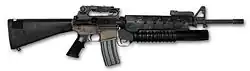- ↑ «A Soldier, right, assigned to the 2100 Military Intelligence Group is handed a M16 rifle by Sgt. Contreras, an armorer assigned to the 4th Law Enforcement Marine Battalion, Charlie Company, May 19, 2018 at Camp Sherman in Chillicothe, Ohio. The Soldiers were firing to complete their annual weapons qualification training Stock Photo – Alamy». alamy.com (em inglês). Consultado em 18 de janeiro de 2023. Cópia arquivada em 10 de abril de 2023
