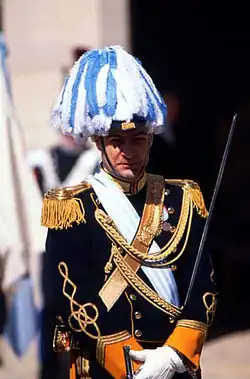 As partes componentes das forças armadas (exceto o puramente histórico Crossbow Corps) distinguem-se (como em muitas nações) por emblemas distintivos, cada um para a Guarda Fortaleza (uniformizada), Guarda Fortaleza (artilharia), Guarda do Conselho, Uniformizada. Milícia, Conjunto Militar (banda) e Gendarmaria.[2] Não há serviço obrigatório, no entanto, em circunstâncias especiais, os cidadãos entre 16 e 55 anos podem ser recrutados para a defesa do Estado.[3]