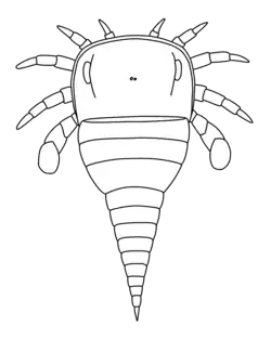 O opistossoma (abdômen), composto por 13 segmentos,[3] tinha um comprimento total de 1,18 cm. O pré-abdômen (segmentos 1 a 4) era quase trapezoidal (subtrapezoidal) e se estreitava posteriormente. Impressões vagas distinguem os segundo, terceiro e quarto tergitos (metade dorsal dos segmentos), mas não o primeiro. O pós-abdômen (segmentos 5 a 13) também se afilava posteriormente, sendo mais longo, com seus 9 tergitos visíveis no fóssil, cada um com aproximadamente 0,08 cm de comprimento. O télson (a divisão mais posterior do corpo) é desconhecido,[1] mas provavelmente era curto, como em outros membros contemporâneos de Chasmataspidida.[2] O espécime apresenta duas rachaduras no cefalotórax (cabeça) e no pré-abdômen, além de manchas escuras que provavelmente correspondem à ornamentação.[1]