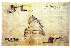 Do tipo abaluartado, apresentava planta pentagonal orgânica (adaptada ao terreno), tendo sido erguido sobre rocha basal, em cantaria. Ocupava uma área de 303,48 metros quadrados.