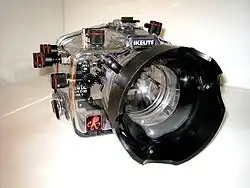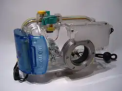 Para recreação, são fabricados cases universais de plástico flexível que tornam a câmera à prova d'água e permitem levar a câmera a cerca de 10m de profundidade,[3] assim como a câmera digital esportiva D10 da Canon ou a câmera descartável Ultra Aquatic da Kodak.