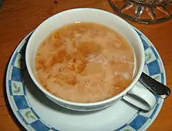 Em um país que toma café, a Frísia Oriental é conhecida por seu consumo de chá e sua cultura de chá. Per capita, o povo da Frísia Oriental bebe mais chá do que qualquer outro grupo de pessoas, cerca de 300 litros por pessoa por ano.[5] Um chá preto forte é servido sempre que houver visitantes em uma casa ou outro encontro da Frísia Oriental, bem como no café da manhã, no meio da tarde e no meio da noite. O chá é adoçado com kluntjes, um açúcar de bala que derrete lentamente, permitindo que várias xícaras sejam adoçadas.[6] Creme pesado também é usado para dar sabor ao chá. O chá é geralmente servido em xícaras pequenas tradicionais, com pequenos biscoitos durante a semana e bolo em ocasiões especiais ou nos fins de semana como um tratamento especial. O rum marrom, misturado com kluntjes e deixado por vários meses, também é adicionado ao chá preto no inverno. O chá é acusado de curar dores de cabeça, problemas estomacais e estresse, entre muitas outras doenças. O chá não é apenas um tipo de bebida para a população, mas também faz parte de sua tradição cultural. Ao longo dos anos, a região desenvolveu uma cerimônia do chá única que pode ser observada estritamente em famílias mais velhas. Como parte dessas regras, a mulher mais velha da rodada deve servir os outros convidados com chá, começando com o segundo mais velho e depois diminuindo de idade, independentemente do sexo. O "kluntje" deve ser colocado dentro da xícara de chá antes que o chá seja derramado sobre ela. Depois disso, um pouco de creme de leite é adicionado cuidadosamente, como uma camada superior, para criar "nuvens" (wulkjes) que nadam no próprio chá. É proibido agitar o chá, para que as camadas permaneçam suaves, fortes e doces de cima para baixo. Dependendo da região da Frísia Oriental, o chá também pode ser derramado da xícara no pires e bebido a partir daí. Se você não quiser mais chá, terá que colocar a colher na xícara ou o anfitrião irá encher a xícara imediatamente depois que todos na rodada terminarem a xícara de chá atual.