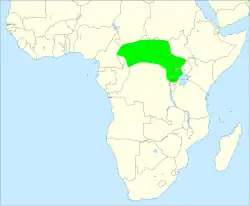 Pode ser encontrada nos seguintes países: República Centro-Africana, República Democrática do Congo, Sudão e Uganda.