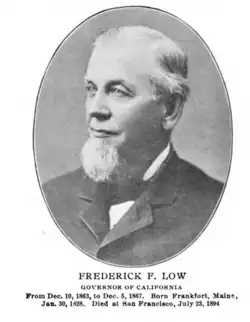 - ↑ State Capitol Museum. «Frederick Low, 9th Governor (1863-1867)». State of California. Consultado em 3 de maio de 2007. Cópia arquivada em 13 de agosto de 2007