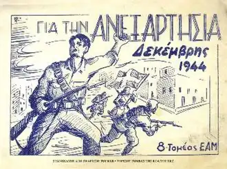 Após a libertação em outubro de 1944, as tensões entre a ΕΑΜ e as forças anticomunistas, que eram apoiadas pela Grã-Bretanha, aumentaram. Originalmente, conforme acordado na Conferência do Líbano, ΕΑΜ participou no governo de unidade nacional sob Geórgios Papandréu com 6 ministros. As divergências quanto ao desarmamento da ELAS e à formação de um exército nacional fizeram com que os seus ministros, no dia 1 de Dezembro, se demitissem. ΕΑΜ organizou uma manifestação em Atenas em 3 de dezembro de 1944 contra a interferência britânica. Os detalhes exatos do que aconteceu têm sido debatidos desde então, mas os gendarmes gregos abriram fogo contra a multidão, resultando em 25 manifestantes mortos (incluindo um menino de seis anos) e 148 feridos. O confronto se transformou em um conflito de um mês entre a ELAS e as forças governamentais britânicas e gregas, conhecido como os "eventos de dezembro" (Dekemvrianá), que resultou na vitória do governo.