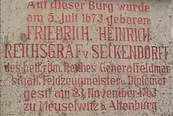 - Würzbach's Biogr. Lexikon, pt. 33, "Versuch einer Lebensr beschreibung des F. M. Seckendorf" (Leipzig, 1792–1794); Seelander, Graf Seckendorf und der Friede v. Passau (Gotha, 1883); Carlyle, Frederick the Great, vols. i.-v. passim; and memoir in Allgemeine deutsche Biographie.
