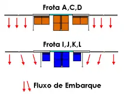 | Capacidade | 316 passageiros (Carro A)--- 346 passageiros (Carro B)--- TOTAL: 2070 (condição 8 pass/m²) |