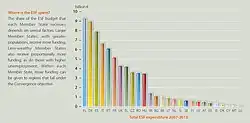 A afectação de despesas do FSE por Estado-Membro para o período 2007-2013 é indicada no gráfico 2. É possível verificar o carácter de redistribuição do FSE no gráfico 3, que mostra a despesa per capita da população nos Estados-Membros.