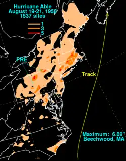- ↑ David X. Roth (2010). «Rainfall Summary for Hurricane Able (1950)». Hydrometeorological Prediction Center. Consultado em 22 de abril de 2010