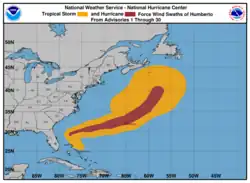 - ↑ Stacy R. Stewart (17 de setembro de 2019). «Hurricane Humberto Discussion Number 20». National Hurricane Center. Consultado em 19 de setembro de 2019