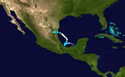 Uma área de distúrbios meteorológicos foi mencionada pela primeira vez em perspectivas climáticas tropicais do NHC em 10 de setembro, ao leste da Península de Iucatã. O desenvolvimento do furacão foi muito lento, embora as indicações eram de que as condições seriam favoráveis para o fato acontecer na Baía de Campeche. Em 12 de setembro ficou comprovado que se tratava de uma depressão tropical.