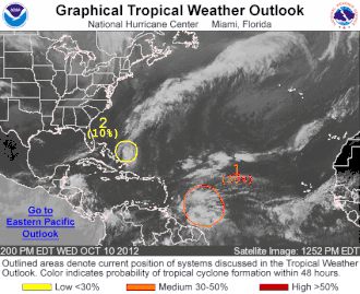 - ↑ Mike Formosa. Tropical Weather Discussion, outubro 5, 2012. National Hurricane Center (data de acesso a 12 de outubro, 2012) [1]