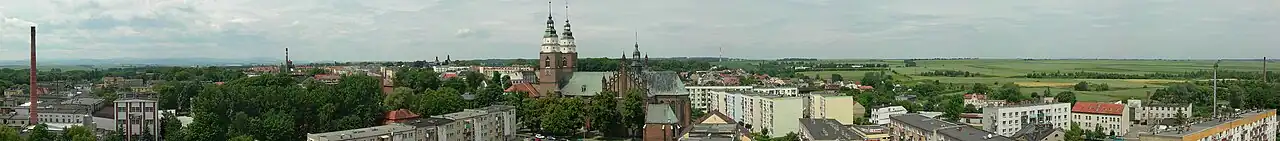 - Traçado urbano da Cidade Velha, com uma forma quadrada única na Europa (semelhante se encontra em Nysa) e uma rede de ruas, sendo as mais antigas as ruas Wodna e Kościelna. Da atual rua Kozielska, na seção da praça principal, até os poços de Santa Floriana era chamado de Mercado do Cavalo,[35]