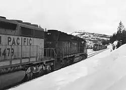 Locomotiva SD45X N° 9502 da Southern Pacific, acoplada a uma SD40-2