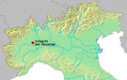 Por sua parte, o colega de Mário, Quinto Lutácio Cátulo, não teve tanta sorte. Ele tentou deter os cimbros no passo de Brennero, mas teve que retroceder e permitiu o avanço inimigo até o norte da Itália no final do ano. Mário estava em Roma e, depois de ser nomeado cônsul novamente, em 101 a.C., deixando de lado um triunfo por sua vitória contra os teutões, e seguiu rapidamente para o norte para unir-se a Cátulo, prorrogado por um ano a mais (neste caso como procônsul). Finalmente, no verão deste mesmo ano, se realizou a Batalha de Vercelas, na Gália Cisalpina.[24] Mais uma vez, a disciplina das tropas romanas resistiu contra uma força muito maior. Ao menos 65 000 germânicos morreram (é possível que o número seja tão alto quanto 100 000) e os sobreviventes foram escravizados. Os tigurinos deram meia-volta e retornaram para sua terra natal. Cátulo e Mário celebraram um triunfo conjunto, mas o povo deu todo o crédito da vitória a Mário, o que transformaria Cátulo em um futuro inimigo político de Mário., Como recompensa, Mário foi nomeado cônsul mais uma vez, em 100 a.C., apesar de o perigo iminente ter acabado. Mas a honra seria dúbia, pois o ano não foi bom para o Mário.
