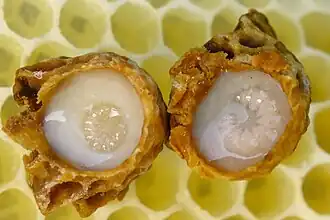Geleia real é uma secreção de abelhas que é utilizada na nutrição de larvas e rainhas adultas.[1] É secretado pelas glândulas na hipofaringe das abelhas enfermeiras e alimentado a todas as larvas da colônia, independentemente do sexo ou casta.[2]