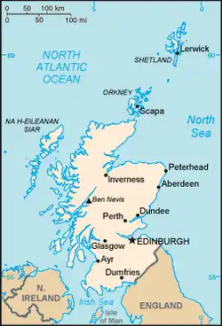 A Escócia é parte do Reino Unido, localizado na Europa Ocidental. A Escócia ocupa a terça parte ao norte da ilha da Grã-Bretanha, junto com uma grande quantidade de pequenas ilhas.