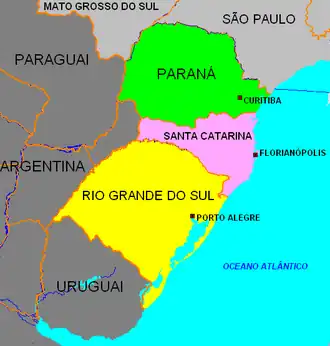 - ↑ Wagner de Cerqueira e Francisco (2012). «A Região Sul» (HTML). Brasil Escola. Consultado em 20 de maio de 2012