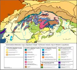 - Rudabanyaicum : Pequenas unidades nappe triássicas levemente metamorfoseadas que se estendem da Hungria para a Eslováquia.
