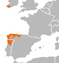 Pode ser encontrada nos seguintes países: Irlanda, Portugal e Espanha, tendo uma distribuição disjunta.