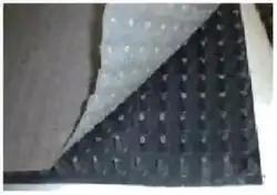 Geocompostos drenantes - é um tipo especial de geocomposto constituído por por um núcleo drenante envolvido por um geotêxtil com função de filtro. Podem apresentar-se na forma de mantas, painéis ou fitas. A forma mais comum de aplicação é como dreno vertical sendo aplicado por equipamento semelhante a uma perfuratriz de solos, com a intenção de fazer o rebaixamento do lençol freático e o adensamento de solos moles.