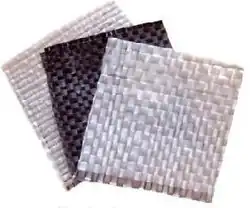 Geotêxteis - podem ser do tipo não tecido, quando suas fibras não seguem nenhum padrão pois na sua fabricação elas são agrupadas aleatoriamente, ou tecidos cujas fibras estão bem organizadas formando uma trama. As principais aplicações dos geotêxteis são em filtros e em drenagens.