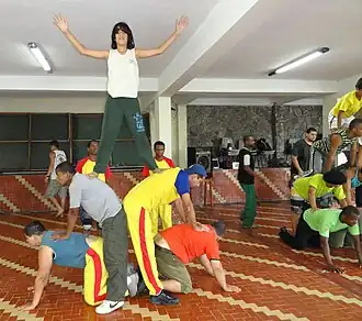 Ginástica montada tem objetivo geral de demonstrar a força, paixão e união dos jovens. Não é uma modalidade para disputar campeonato. O fluxo geral de apresentação é de montagens pequenas-leves para as grandes-pesadas. As apresentações de ONGs, tal como SGI, é muito variável, tais como onda bi-simensional, canhão, helicóptero, muro móvel, pirâmide móvel, catapulta, pirâmide de levantamento instantâneo, torre de levantamento instantâneo, torre plana de 3 andares, torre de 4 andares e, raramente, torre de 5 andares. A torre humana de 6 andares que se levantou em Osaka, Japão, em 1982, foi registrada no Livro de Guinness. No dia 30 de outubro de 2011, no Teatro Ribalta, Rio de Janeiro, foi apresentada o levantamento instantâneo de 5 pirâmides de 4 andares. Desta forma, a ginástica montada está em transformação de arte estática para arte dinâmica.
