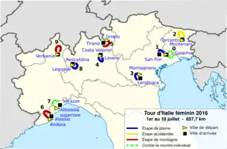 - ↑ «2016 - Giro d'Itália Internazionale Femminile» (em inglês). procyclingstats.com