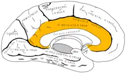 Giro do cíngulo ou supracaloso é um aglomerado de fibras de substância branca em formato de C com axônios fazendo comunicação entre o sistema límbico(controle mais emocional) e o córtex(controle mais racional). Tem funções na evocação de memórias e na aprendizagem.[1]