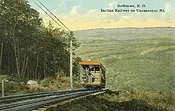 As Montanhas Uncanoonuc em Goffstown uma vez caracterizaram o Uncanoonuc Incline Railway, fundado em 1903. Ele primeiro transportou turistas em 1907 até o cume do pico sul, no qual foi construído naquele ano o Uncanoonuc Hotel. O prédio de 5 ½ andares oferecia de 37 a 38 quartos e uma sala de jantar que acomodava 120 pessoas. Também oferecia vistas impressionantes do vale ao redor, incluindo Manchester, conectado por um bonde elétrico à estação base da ferrovia . O hotel queimaria em 1923, e o trem foi usado mais tarde para transportar os esquiadores até o topo. A ferrovia atingiu o pico durante as décadas de 1930 e 1940, mas foi essencialmente abandonada na década de 1950. A cúpula do pico sul é agora o local de numerosas torres de televisão e rádio.