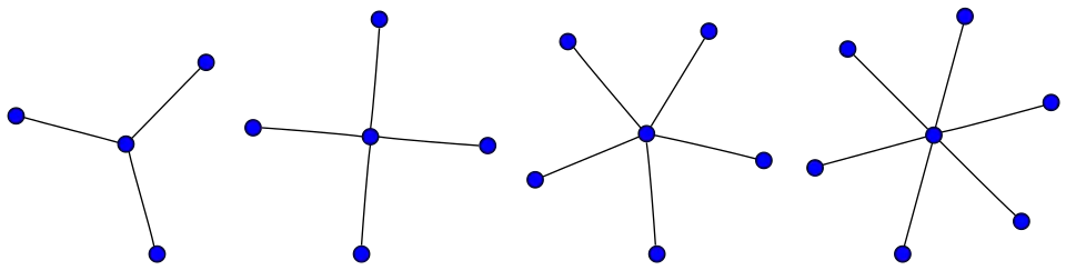 - Para qualquer k, K1,k é chamado uma estrela. Todos os grafos bipartidos completos que são árvores são estrelas.