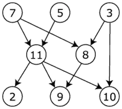 Um grafo é formado por vértices e por bordas que conectam pares de vértices, onde estes podem ser qualquer tipo de objeto que está conectado em pares por bordas. No caso de um grafo direcionado, cada borda tem uma orientação, de um vértice a outro vértice. Um caminho em um grafo direcionado é uma sequência de bordas tendo a propriedade de que o vértice final de cada borda na sequência é o mesmo que o vértice inicial da próxima borda na sequência; um caminho forma um ciclo se o vértice inicial de sua primeira borda é igual ao vértice final de sua última borda. Um grafo acíclico dirigido é um grafo direcionado que não tem ciclos.[1][2][3]