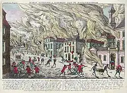 ![]() Quadro retratando o Grande Incêndio de Nova Iorque de 1776 | |