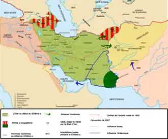 Embora o Grande Jogo seja usado quase sempre como referência ao conflito entre interesses da Grã-Bretanha e da Rússia no Afeganistão, também havia intensa rivalidade na Pérsia e (mais tarde) no Tibete. A Grã-Bretanha estava alarmada com a expansão russa na Transcaucásia às custas da Pérsia. O Tratado de Gulistan (1813) e o Tratado de Turkmanchai (1826) resultaram em ganhos territoriais substanciais para o Czar. Para conter a expansão russa, os britânicos levaram a cabo a tarefa de reorganizar o obsoleto exército persa, transformado-o numa força armada competente. Houve uma série de crises diplomáticas entre Pérsia e Rússia, até certo grau instigadas pela embaixada britânica em Teerã. Uma delas resultou até no assassinato do embaixador russo, Alexander Griboyedov.